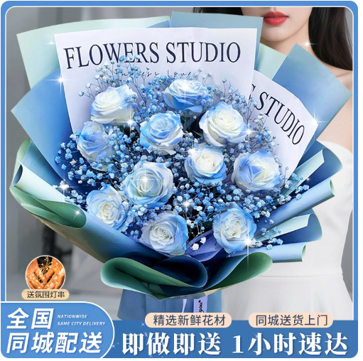 全国碎冰蓝玫瑰花束小时达生日毕业鲜花速递同城 (2)